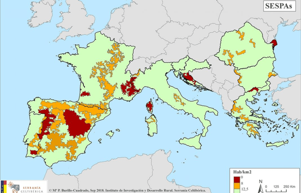 España desierta, vaciada o abandonada ¡Cómo nos gusta jugar con las palabras! Como está desierta y cada vez vive menos gente, los servicios disminuyen (sanidad, transporte, bancos, supermercados, internet, etc.), de ahí la expresión abandonada. O viceversa, como está abandonada, la gente se va; resultado, la España desierta o vaciada. La España abandonada es una, pero en ella se mezclan desde los inmigrantes que recogen fresas con el espinazo doblado a los propietarios de inmensas fincas de olivos. El problema en España es evidente de acuerdo con el mapa de abajo: en el 53% del territorio solo vive el 5% de la población. Además, 1/3 de nuestros agricultores y ganaderos tienen más de 55 años.