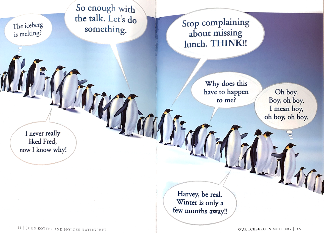 El título del libro es “Our iceberg is melting”.